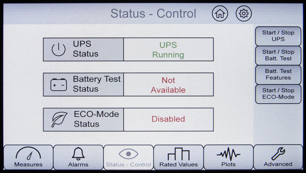 The output power factor (PF=0.9) also stands out, providing optimum electrical protection for computer systems and low harmonic output distortion (THDv even lower than 0.5%), enabling it to protect any type of load (inductive, resistive, capacitive or mixed). In addition, the performance achieved (up to 95% in On-line mode and 98.4% in Smart Eco-mode) produces significant energy consumption savings and reduces air conditioning needs.