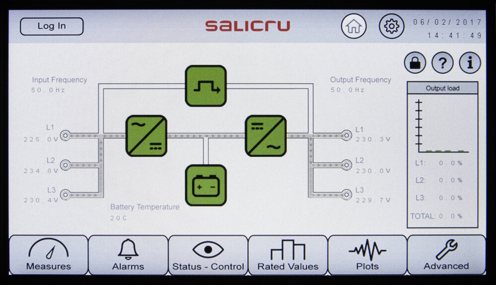 The output power factor (PF=0.9) also stands out, providing optimum electrical protection for computer systems and low harmonic output distortion (THDv even lower than 0.5%), enabling it to protect any type of load (inductive, resistive, capacitive or mixed). In addition, the performance achieved (up to 95% in On-line mode and 98.4% in Smart Eco-mode) produces significant energy consumption savings and reduces air conditioning needs.